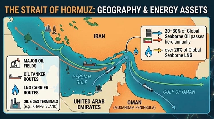 • The Strait of Malacca: Located between Malaysia and Indonesia, this is the busiest transit route in the world, funneling over 23 million barrels daily to power Asian markets.